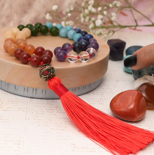 Su combinación de 7 colores inspirados en los Chakras te guía en tu práctica espiritual, ayudándote a equilibrar tus centros energéticos y amplificar la intención de tus Códigos Sagrados. Cada piedra vibra con el chakra correspondiente:
