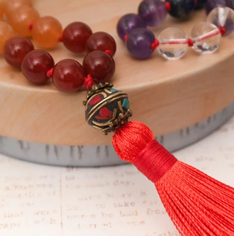 Descubre el Contador de Códigos Sagrados 7 Chakras, una pieza artesanal de 45 cuentas creada con una selección especial de cuarzos: Cornalina, Ágata, Jade, Sodalita y Amatista, acompañados de un delicado dije nepalí que aporta protección y propósito.